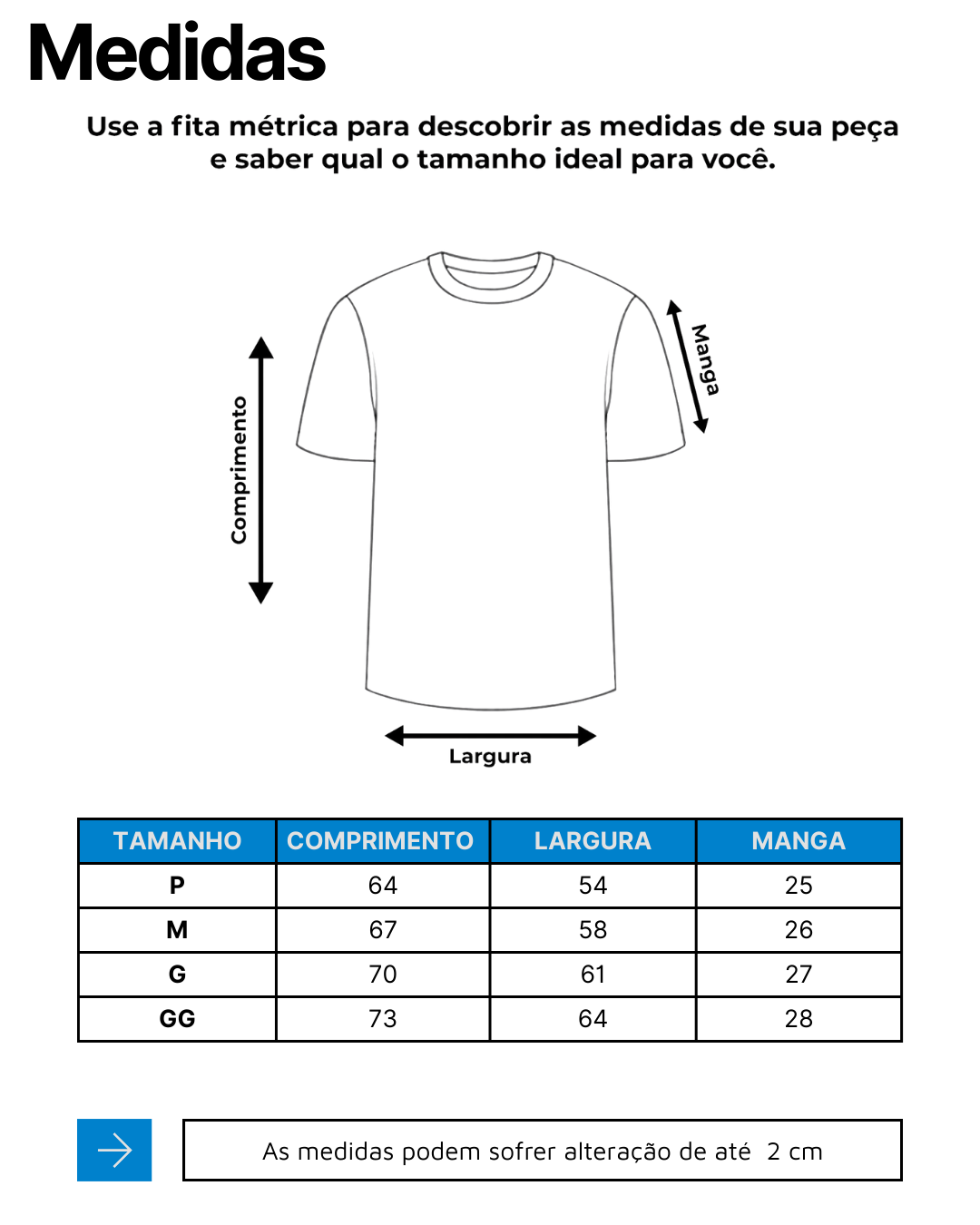 Selecione a opção de Tamanho: